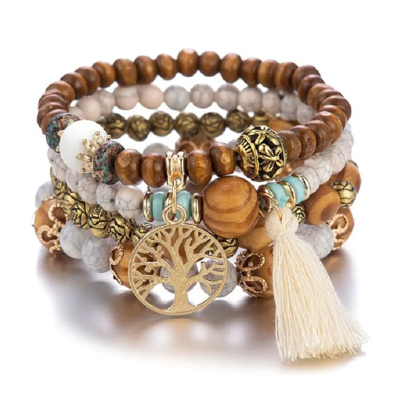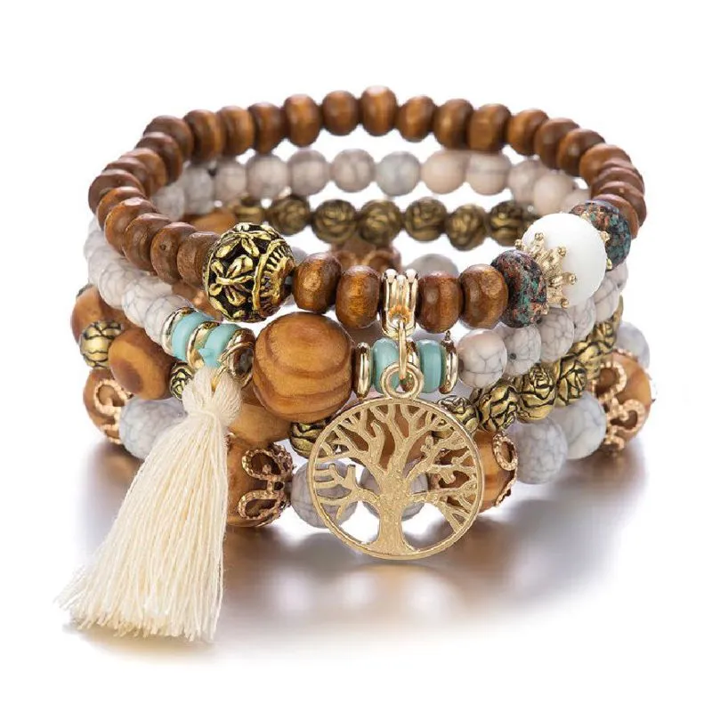 Keturiu apyrankiu rinkinys Bohemia Tree Grey su karoliukais ir intarpais.
